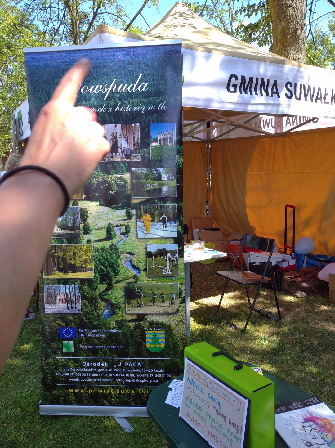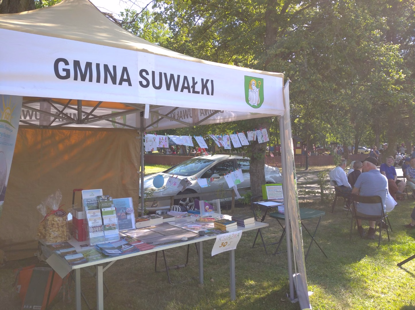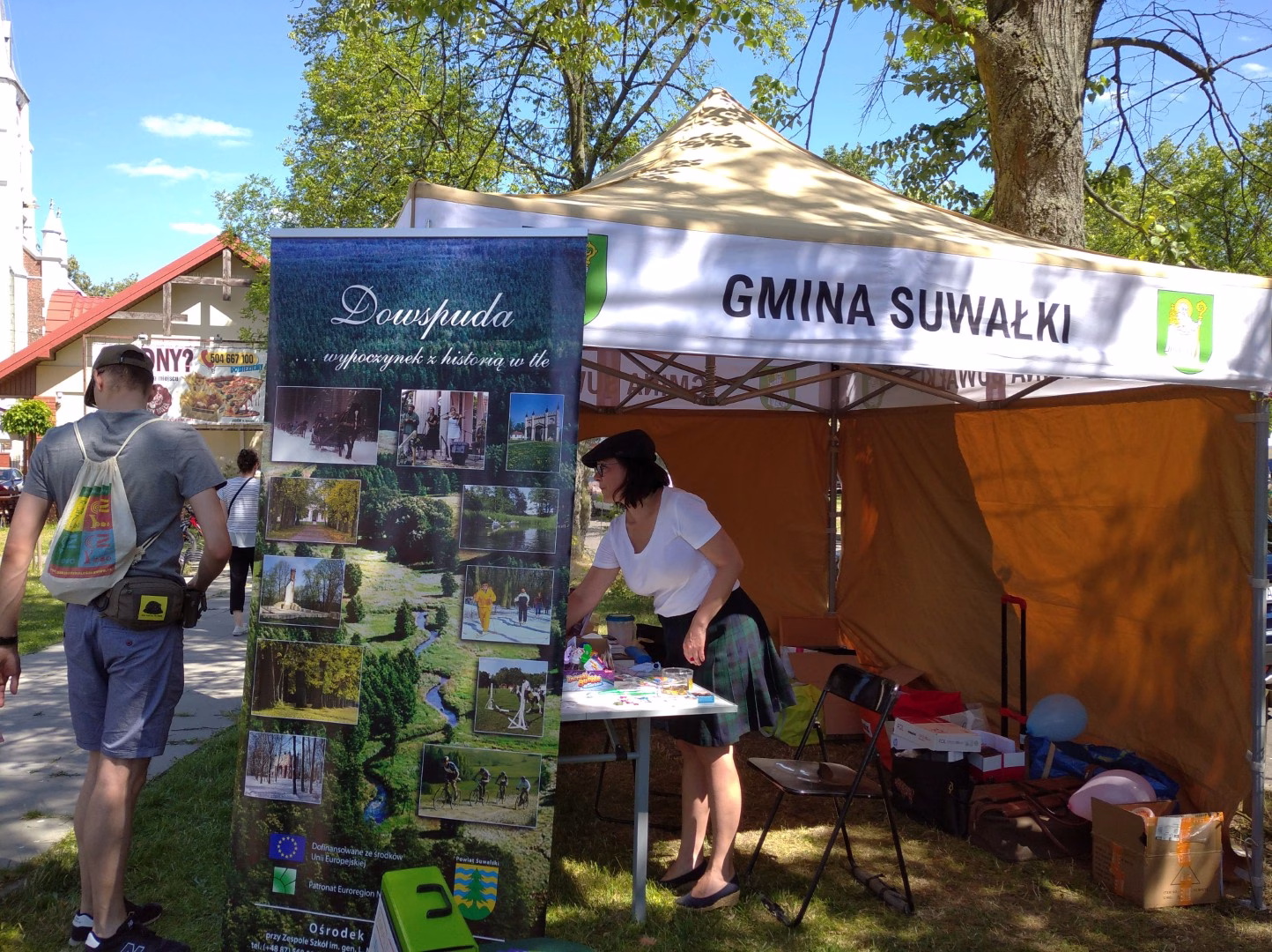 W jadowskim parku Suwalska OT mogła wystawić stoisko swojego regionu dzięki uprzejmości Gminy Suwałki i użyczeniu przez nią namiotu oraz dzięki pomocy technicznej organizatorów wydarzenia. Poza kamedułą w herbie na gminnym namiocie i ofertach wypoczynku, nadwigierskich akcentów na tym stoisku było więcej. Aktywnym wystawcą była pani Katarzyna Barcikowska (warszawianka) – autorka książek dla dzieci i młodzieży o niesamowitych letnich przygodach nad Wigrami grupki przyjaciół i ich rodziców („Tajemnice szopy nad Wigrami” i „Kosmiczna kraksa nad Wigrami”) – poza pomocą w obsłudze stoiska, zorganizowała konkurs rysunkowy dla dzieci (z nagrodami ufundowanymi przez SOT) oraz prezentację różnych ciekawostek o walorach Suwalszczyzny. Towarzyszyły nam też powieści pochodzącego z Suwalszczyzny polskiego autora grozy – Artura Urbanowicza, a przede wszystkim prawdziwe oryginalne sękacze (od producentów z Gmin Suwałki i Raczki).